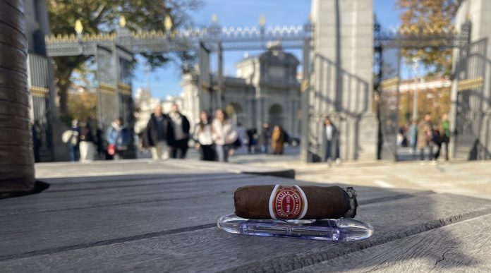 De fortaleza media, base de todo el portafolios de Romeo y Julieta, Petit Royal se presentó por Habanos S.A. en 2017. De sus primeras caladas se desprendieron delicadas notas florales y un dejo de pimienta negra, pero una vez en evolución, el primer tercio acompañó un momento de contemplación del Gran Estanque, que embellece este conjunto escultórico y arquitectónico del Parque del Retiro, declarado Patrimonio Mundial por la UNESCO en 2021.