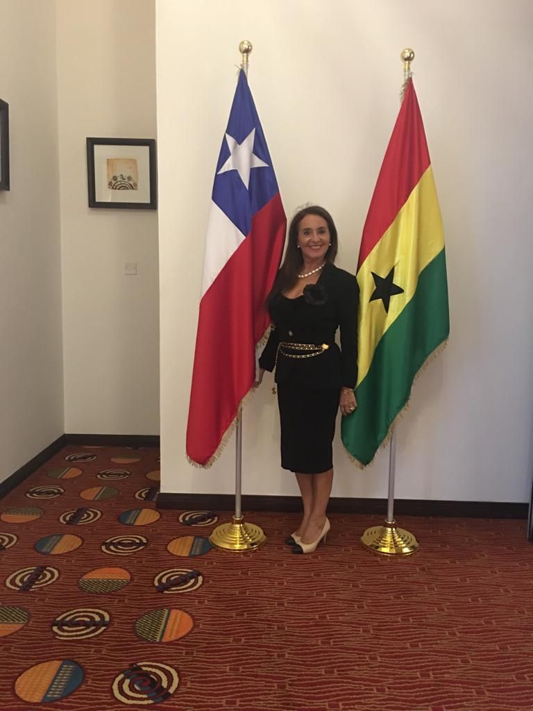Se trata de una Chilena en misión diplomática en Ghana, una república en el oeste de África con más de 32 millones de habitantes, que ocupa el lugar 82 entre los países mas grandes del mundo. Se relaciona con el comercio del oro y por ello se le denomina Costa de Oro. Pertenece a la Unión Africana y a la Commonwealth, y posee gran potencial económico.