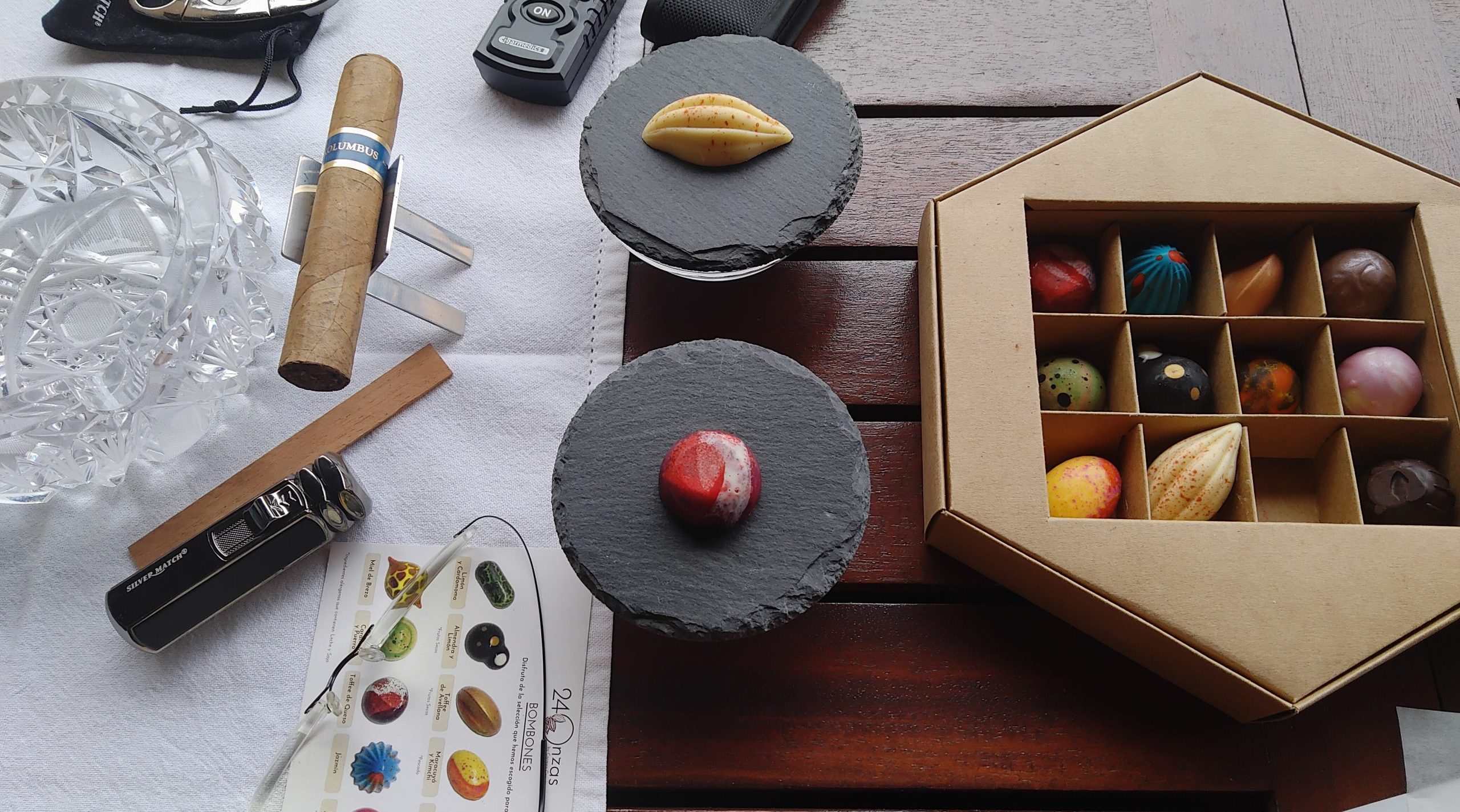 Para nuestros propósitos, bastó con determinar el momento para fumar un tabaco que a pesar de su personalidad –una liga de fortaleza media/baja– no promete algo especial. Sin embargo, pasará sin levantar la voz, sin estridencias, con la selección de bombones de 24 Onzas que la boca me pide. Como dije, con un despertar de la «regularidad» del puro.