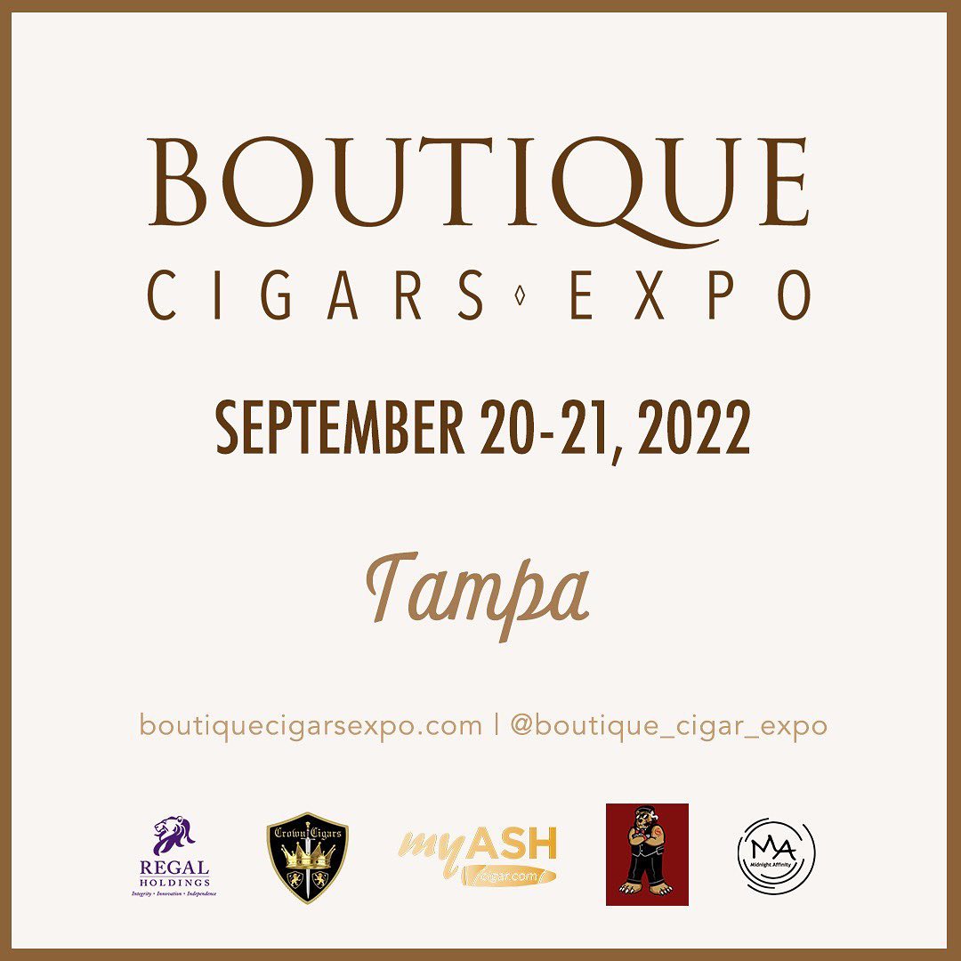 De la mano de Midnight Affinity llc, Crown Cigars y The Big Bear Podcast, los días 20 y 21 de septiembre tendrá lugar la primera edición de la Boutique Cigars Expo Tampa 2022, donde más de un centenar de pequeños y medianos productores se darán a conocer ante el mercado de los Estados Unidos y el mundo entero.