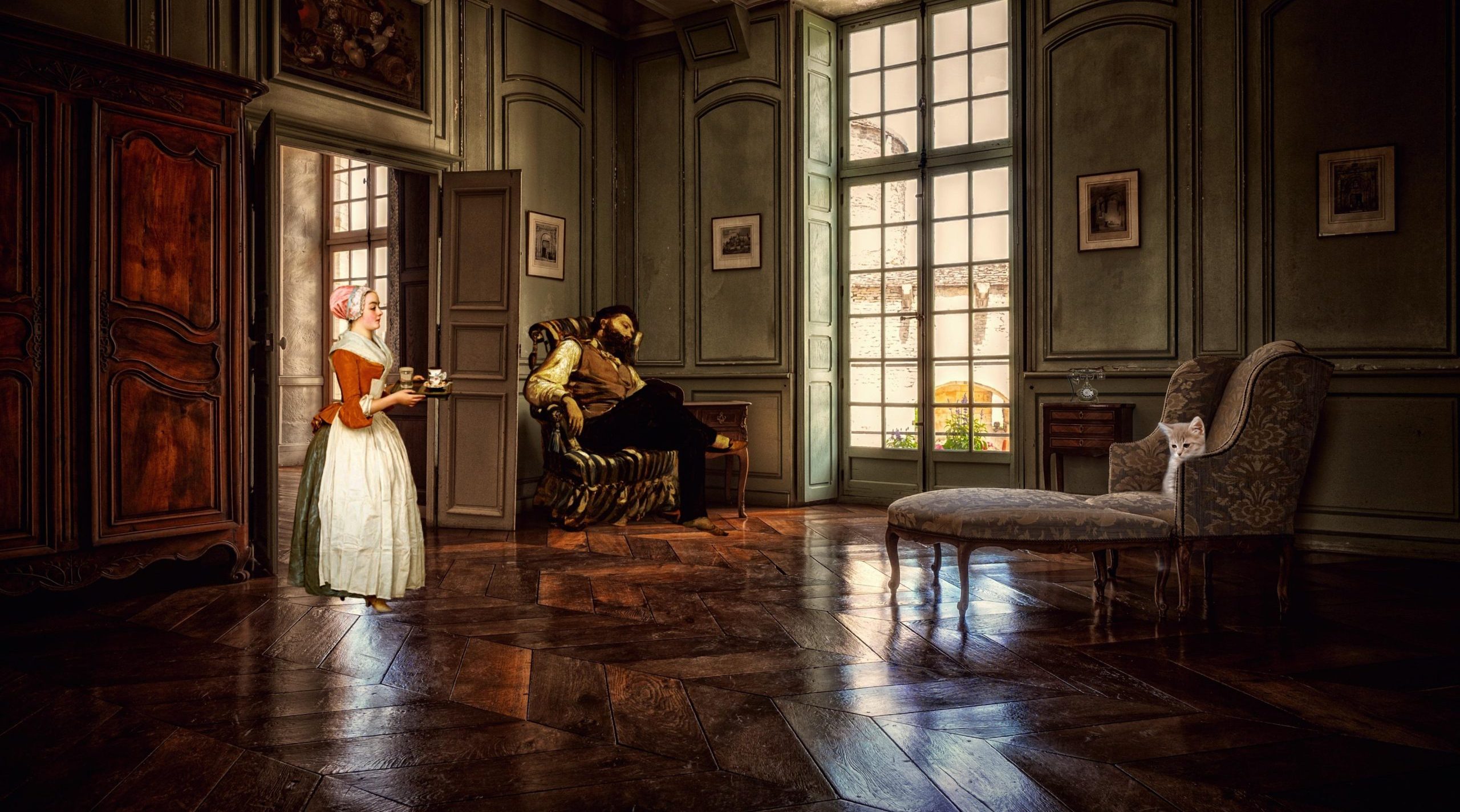 El señor Carrigan también siguió el carruaje hasta la mansión, donde acompañó a los militares al interior para asegurarse de que todo se encontraba bien, hasta donde era posible. A falta de otros familiares y habiendo servido a la familia desde muchos años atrás, Montgomery Carrigan era lo más cercano a un padre para Kalvin.