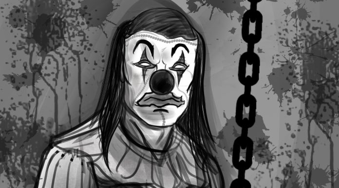 Ahora voy con la máscara. Mi madre la usaba durante su rutina. Originalmente era neutra, totalmente blanca, pero un día, en alguno de los tantos viajes que hacíamos en caravana, fuimos atacados por bandidos. Asesinaron a mi nueva familia, incluida ella, de quien sólo pude conservar la máscara manchada con su sangre y el par de pistolas con las que realizaba mi acto.