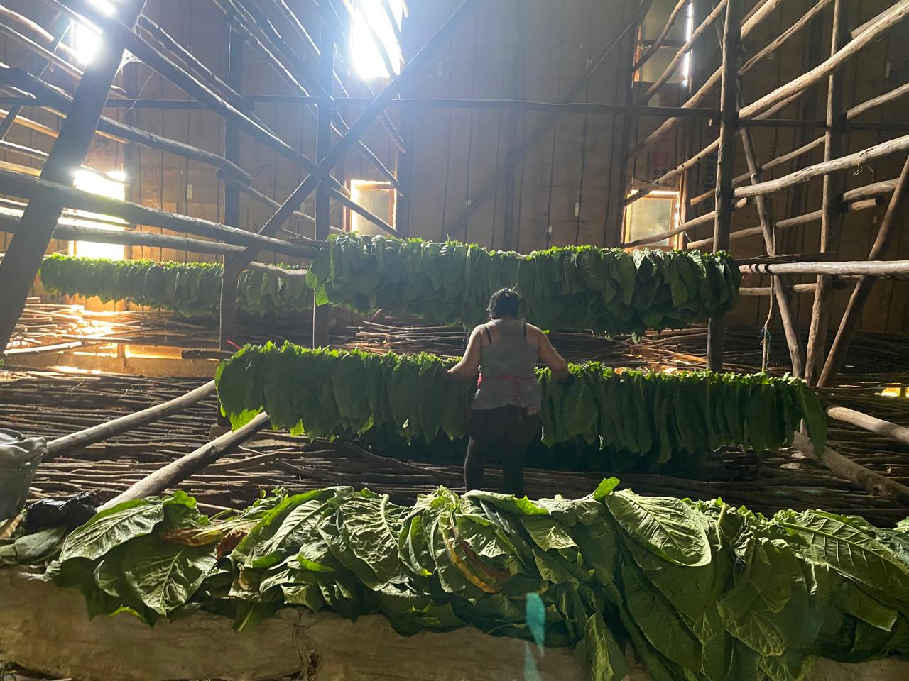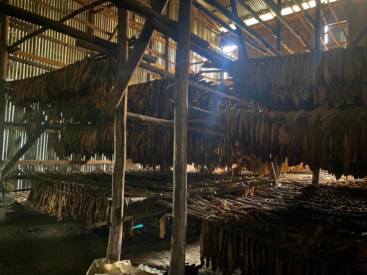 Gracias a nuestros anfitriones y a la fábrica Raíces Cubanas, visitamos un cultivo de tabaco ubicado en El Paraíso, donde vimos los procesos de preparación del campo entre cosechas, siembra, invernadero, desbotonado y galeras; es decir, toda la fase preindustrial.
