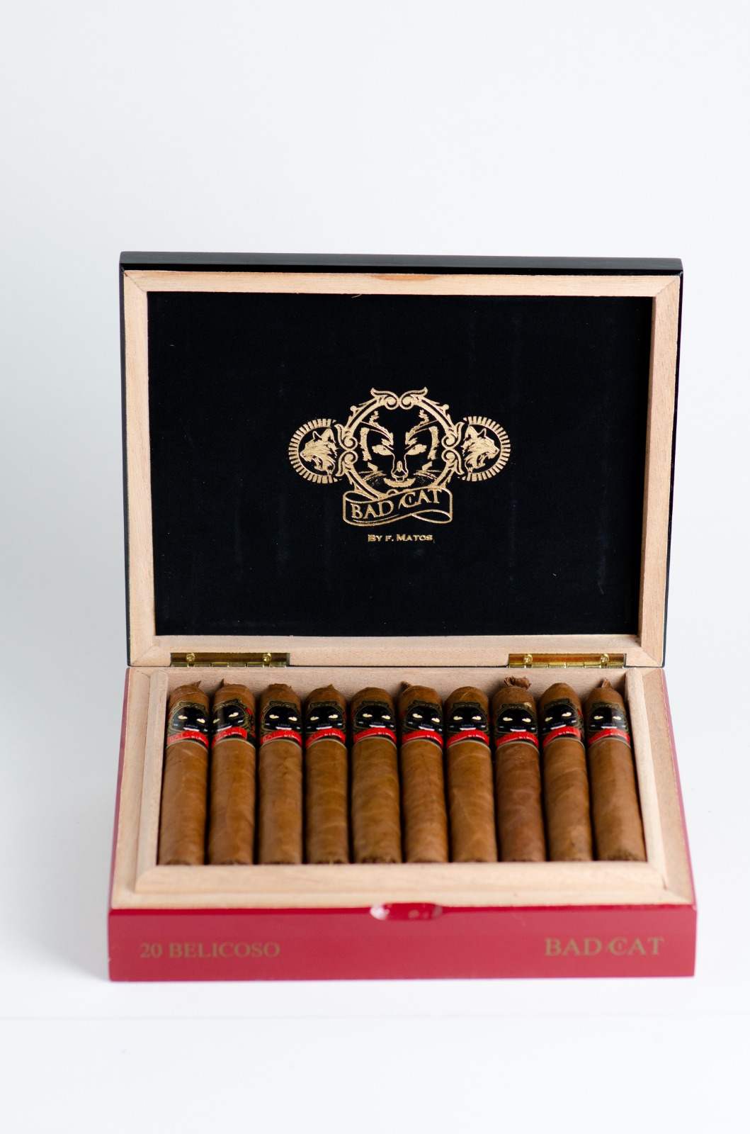 Finalmente Bad Cat, inspirado en los dibujos animados de su niñez y las características de un gato, pues debe degustarse lentamente para evitar un aruño. Incluye capas Negro San Andrés (anilla Oro) y Habano 2000 claro o rosado (anilla Plata), en formatos Gran Toro Pigtail y Belicoso; ambos de 6 pulgadas, cepo 54, con tabacos un poco más fresco.
