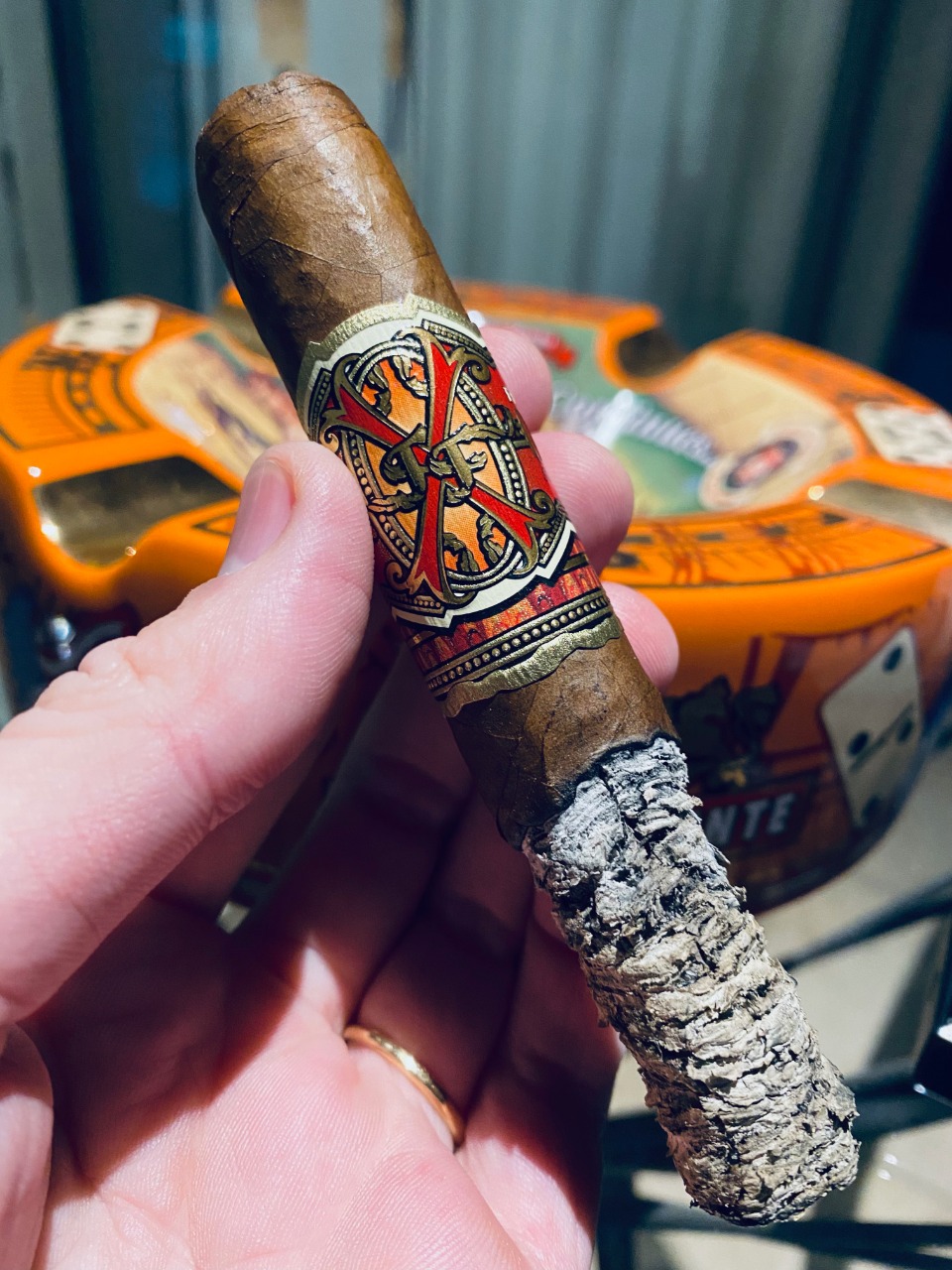 Hoy tengo la posibilidad de disfrutar de este ícono de la historia del tabaco gracias a Gabriel Estrada que, además de ser Hombre Habano 2019 en la categoría Negocios, es el importador oficial de Arturo Fuente en Argentina, desde Bellagio Habanos Lounge. Y por supuesto, no iba a desaprovechar la oportunidad de dedicarle un artículo completo a esta maravilla. Fuente Fuente Opus X es un puro 100 por ciento dominicano de 46 de cepo y 143mm (5.625 pulgadas) de longitud, y de fortaleza media a alta.