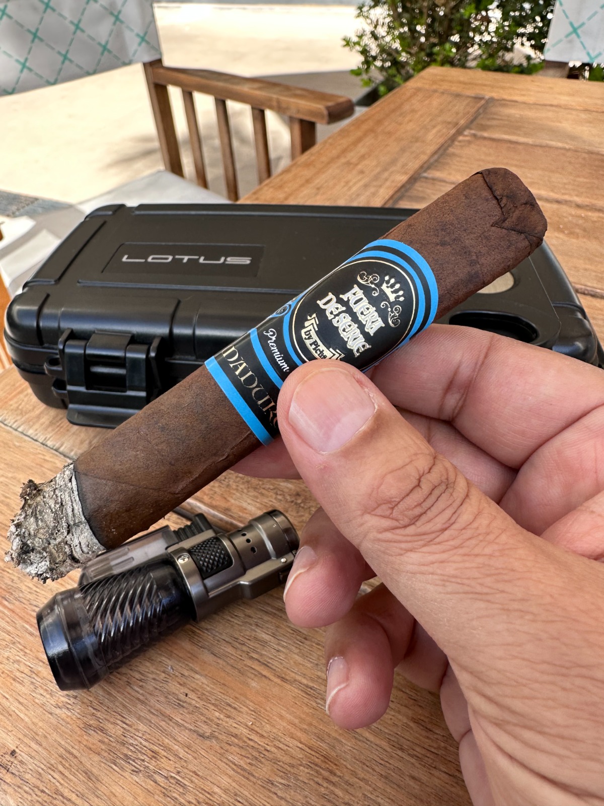 Conclusión. El Maduro de Fuera de Serie es un buen puro que compraría y fumaría seguido. Es un cigarro de gran fortaleza, lo he fumado de día y de noche, al aire libre y en un lugar cerrado, y no se bien por qué pero disfruté más fumarlo al amparo de un agradable sol de una mañana en mi ciudad, acompañado de un buen café, negro, solo y bien caliente.