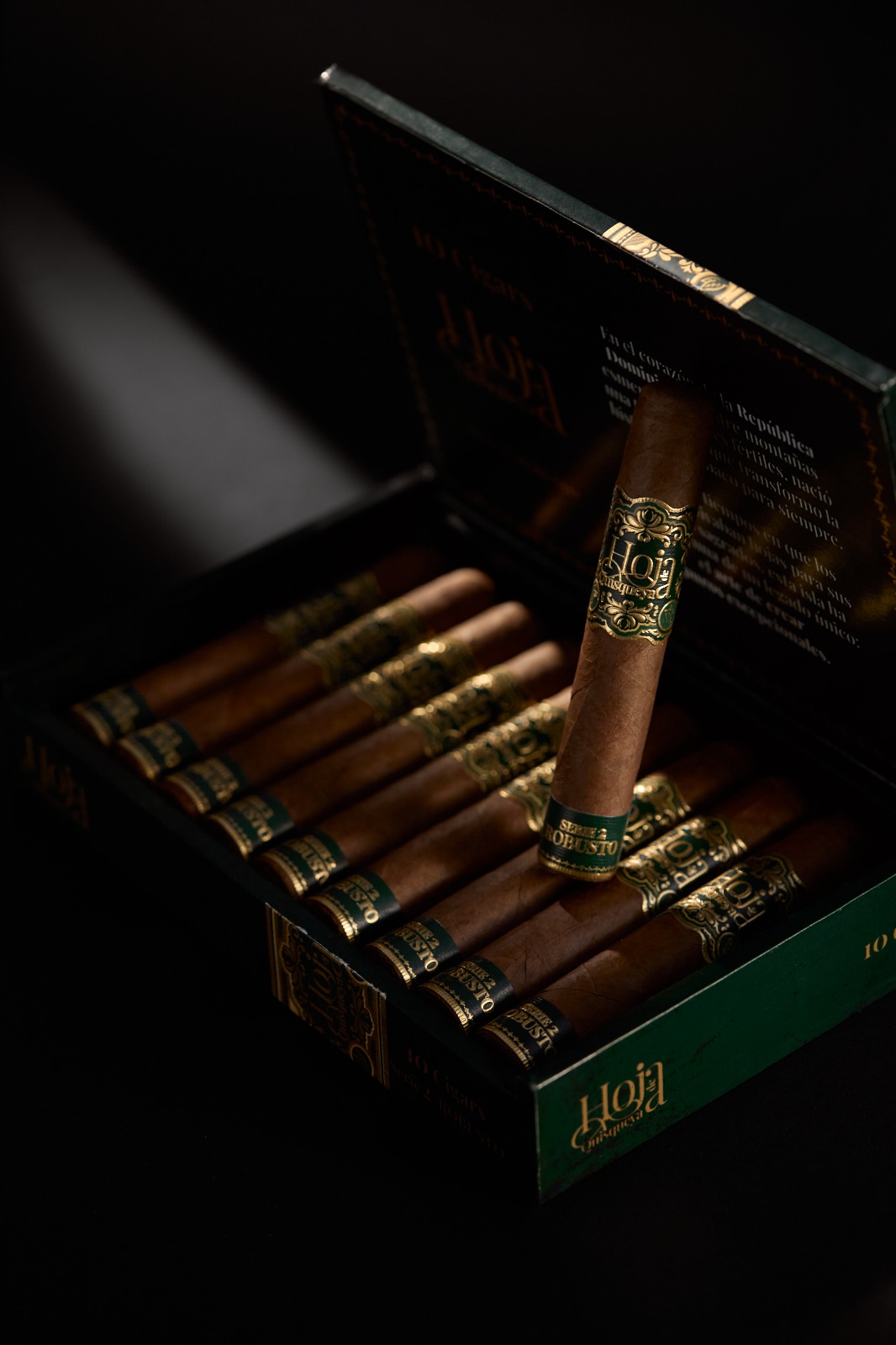 Entre un mar de opciones para nombrar a su línea debut –algunas ya registradas y otras sin la fuerza necesaria– la pareja se decidió por Hoja de Quisqueya, una marca que en apenas tres palabras expresa la esencia de su cigarro, enmarcando sabor, herencia, tradición y elegancia; un encuentro de dos mundos –taíno y castellano– de la mano de España y la República Dominicana, por y para el disfrute del tabaco.