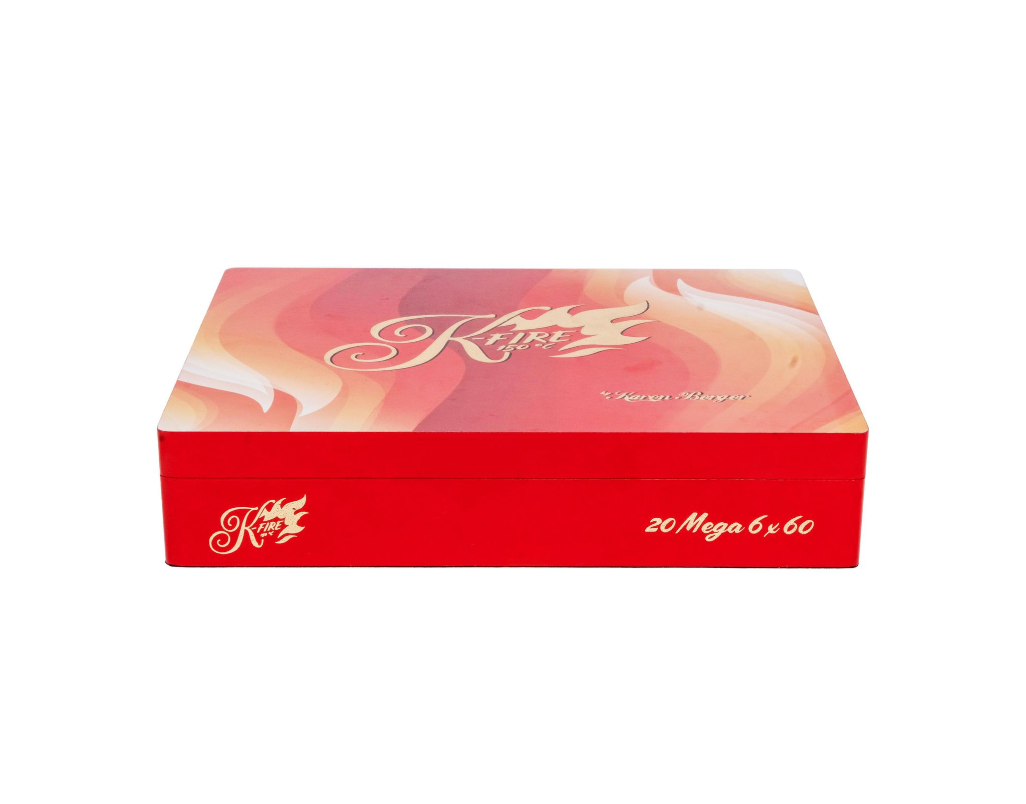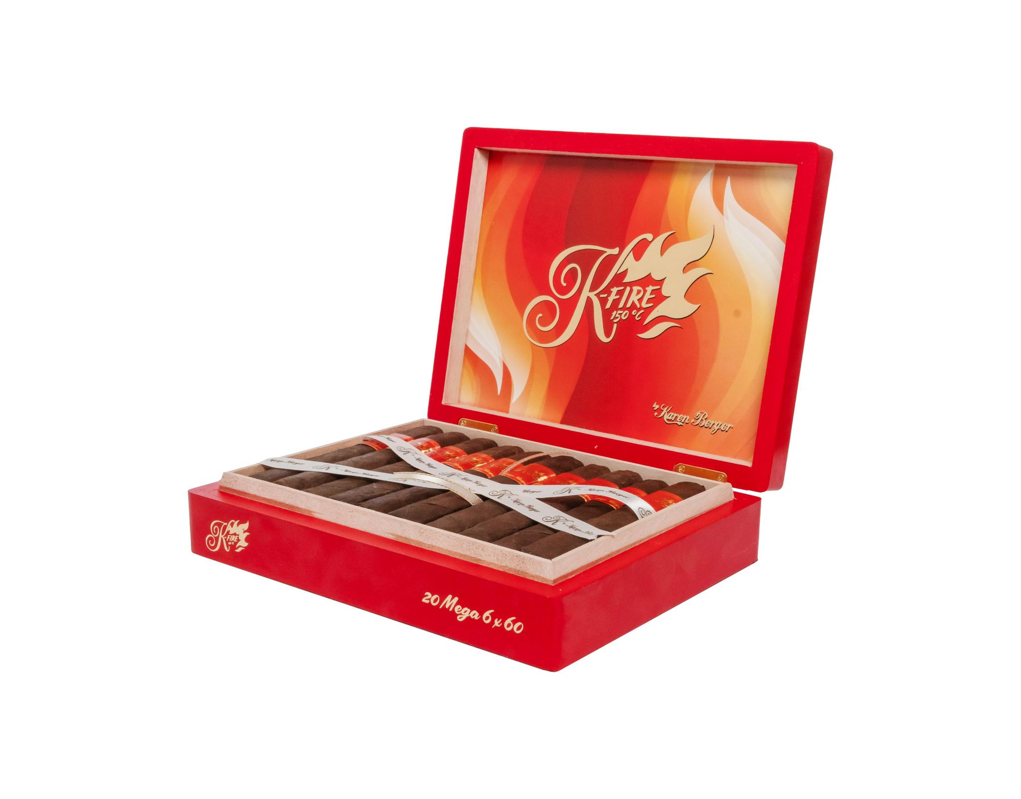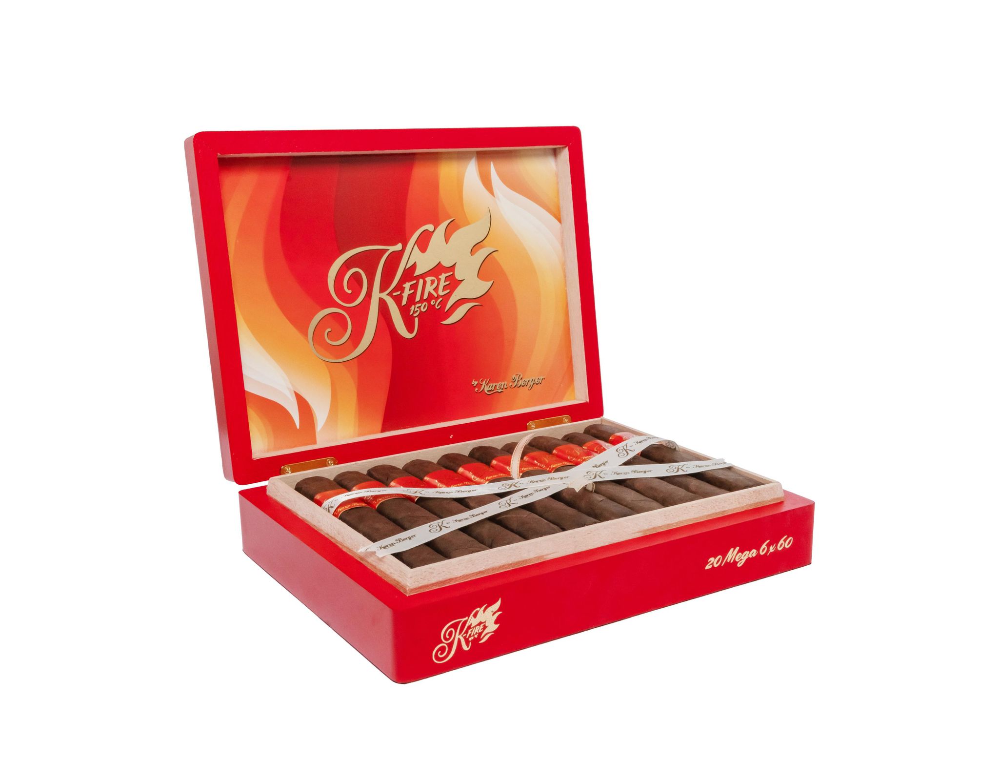 Se trata de la misma mezcla pero en un formato 6×60, un cigarro para aquellos que ya aman el K-Fire pero quieren más humo para acompañar el gran sabor de la capa Negro San Andrés México, acentuado con el capote Habano Jalapa y los tabacos de Estelí, Nicaragua, que conforman su tripa. Cabe destacar que esta esta segunda vitola K-Fire Mega se suma al Box Pressed 6×52, en presentaciones de cajas de 20 cigarros.