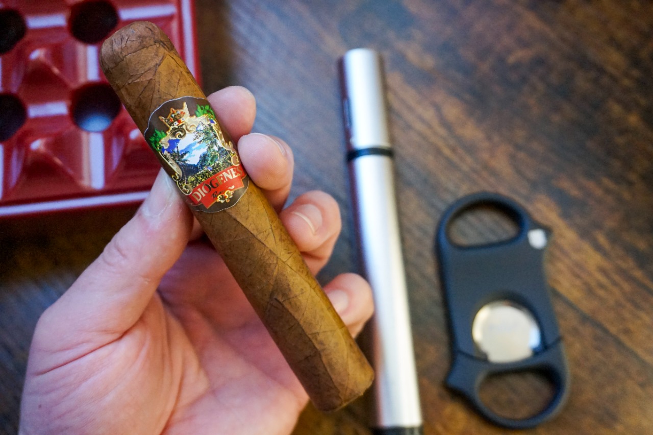 Para el encendido utilicé gas butano. Las primeras bocanadas de este Diógenes Puentes marcaron un tiro apretado –no en los niveles de un Habano– y un humo sabroso, pero con poco cuerpo. Me refiero a un humo más liviano, menos denso y bastante blanquecino.