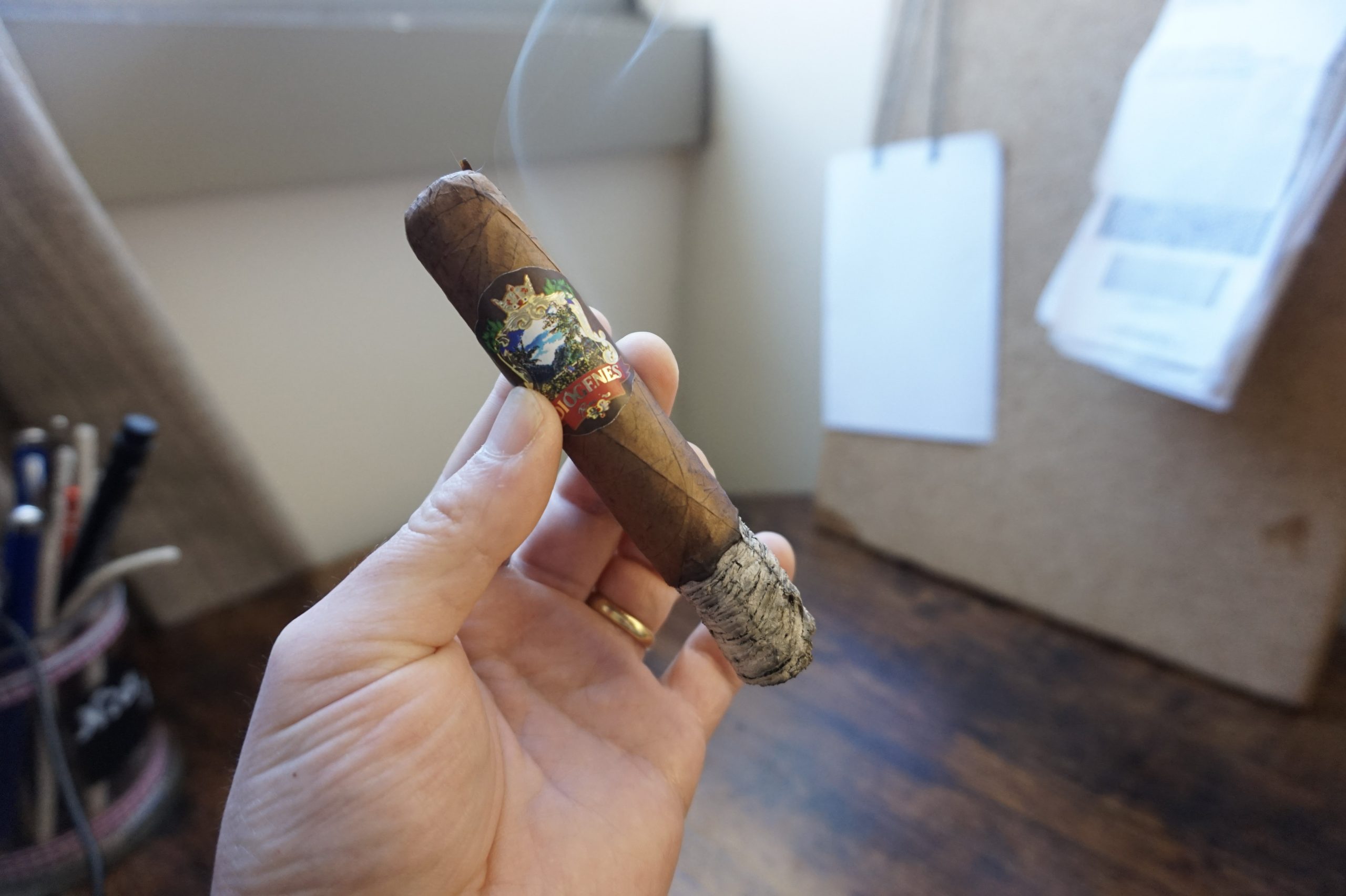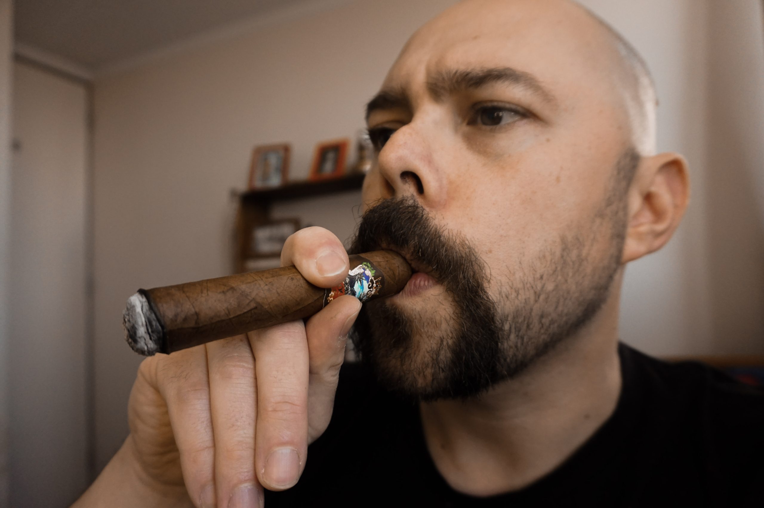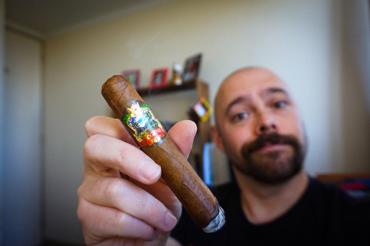 Avanzado en el primer tiempo, ya que un robusto no alcanza tercios y lo dividimos en dos tiempos, se añadieron a la fiesta unas notas frutales, algo como banana, y hacia el final se volvió algo mineral y salino –no soy fan de esas notas–, pero no por mucho tiempo. Rápidamente volvió a lo floral, al cuero y se sumó el cacao.