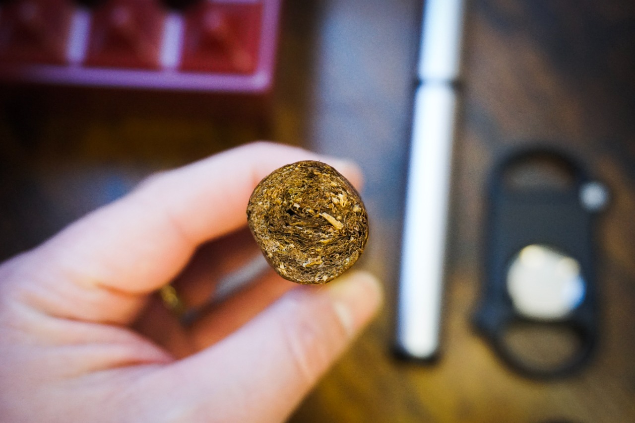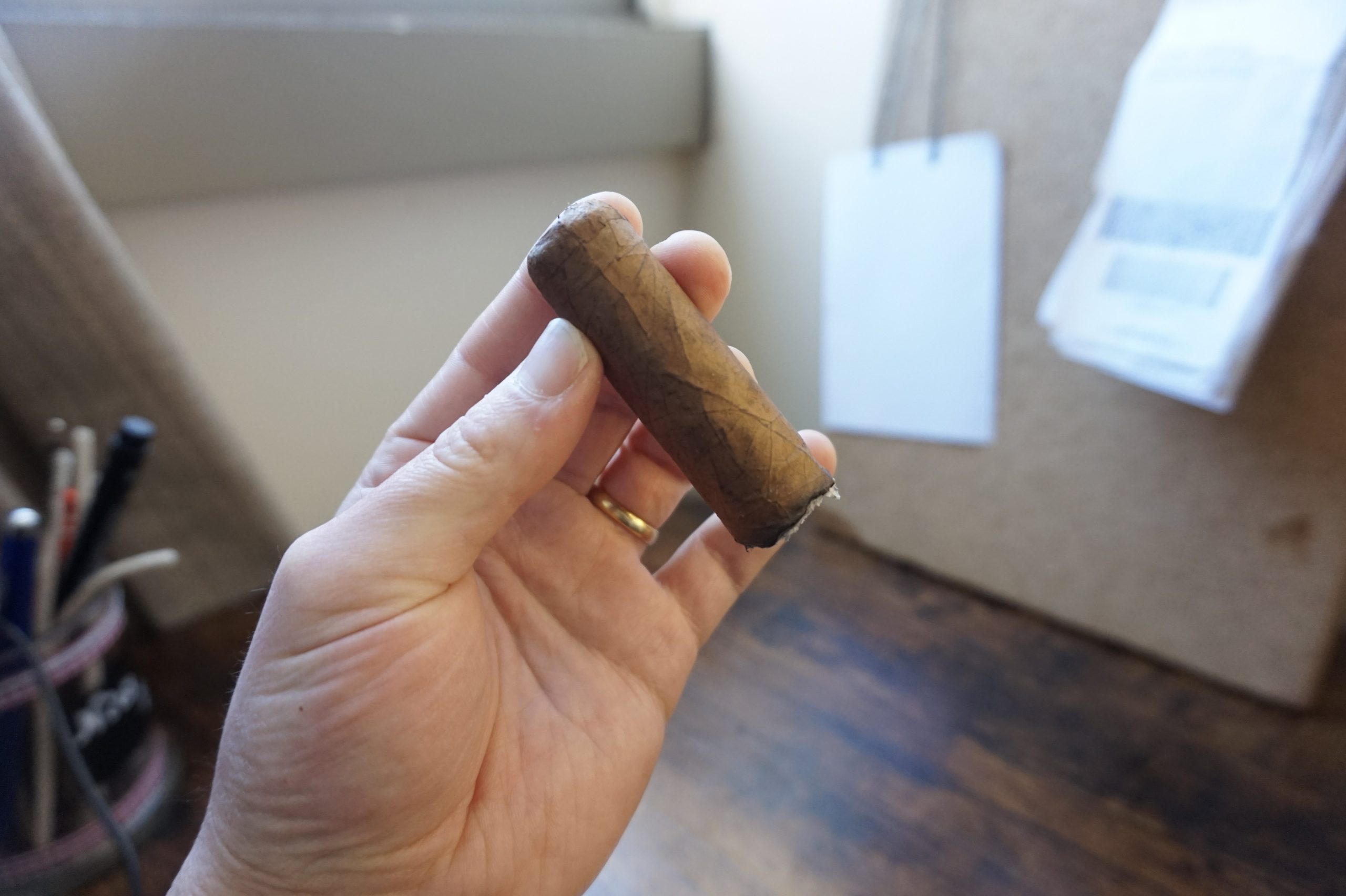 Aunque lo había fumado antes, al observar el pie del cigarro reparo en la gran cantidad de tabaco que contiene; señal inequívoca de que el tiro estaría un poco apretado.