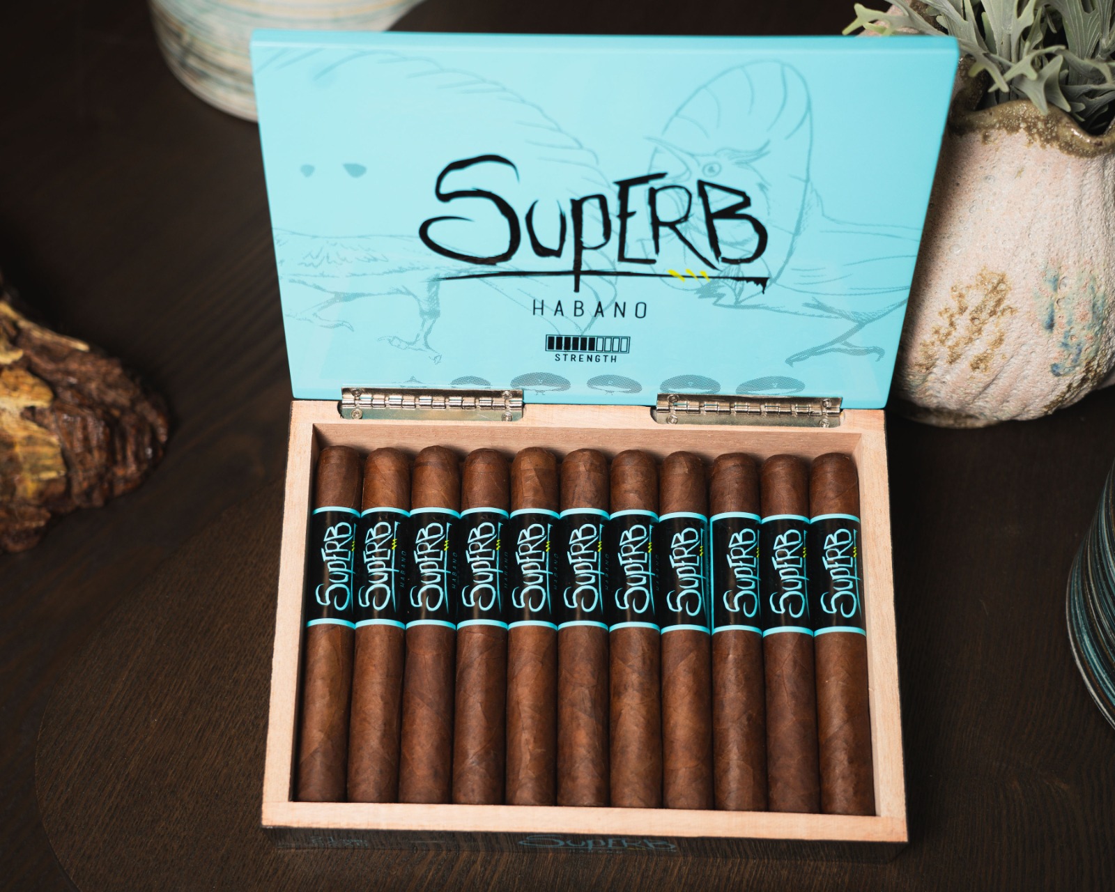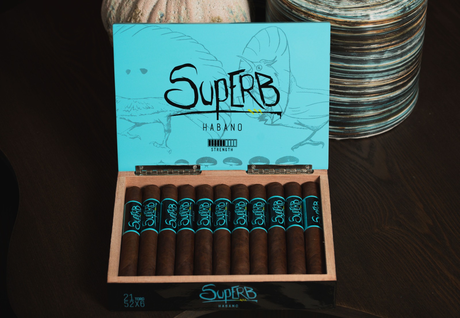 El Superb es un cigarro capa Habana en formatos Robusto Gordo y Toro, que se suma a un vitolario donde esta variedad sólo estaba presente en los capotes de Rook y el Crow. La pieza se presentó durante la reciente Total Product Expo (TPE), en Las Vegas, con la idea de estar presente en los principales rankings mundiales. Su entrada estelar al mercado será en marzo, en la edición 2024 de la Feria Comercial de la Premium Cigar Association (PCA), en la misma ciudad estadounidense.