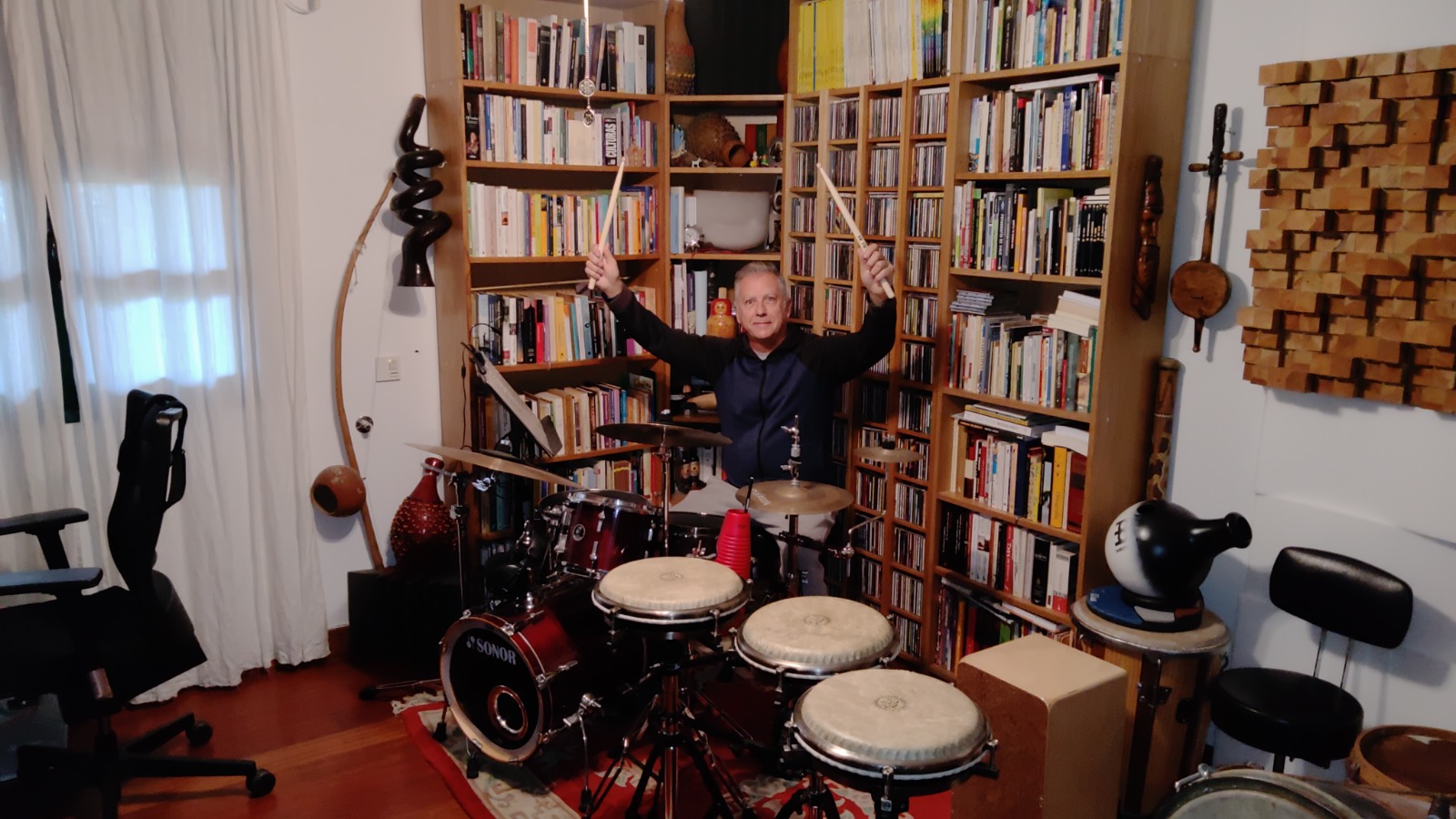 Fernando García es palmero, de Mazo (isla de La Palma), y nos conocemos desde muy jóvenes. Percusionista de largo currículo, un día está en España y al siguiente, en México, Nicaragua, Dominicana o Cuba, lo que nos dificulta coincidir. No es un amigo, sino casi un hermano, cuyo temperamento desenfadado –agravado con los años–, le impide ser serio durante cinco minutos.