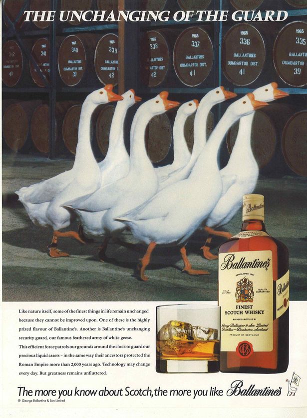 Entonces fue así que a finales de 1959, se alistó a un destacamento de seguridad que tenía la importante misión de proteger el stock de miles de hectolitros de whisky añejado por Ballantine’s. Por cierto, si me permiten decir, bastante inusual resultó el escuadrón de gansos, o como se lo denominó más glamorosamente, Scotch Watch.
