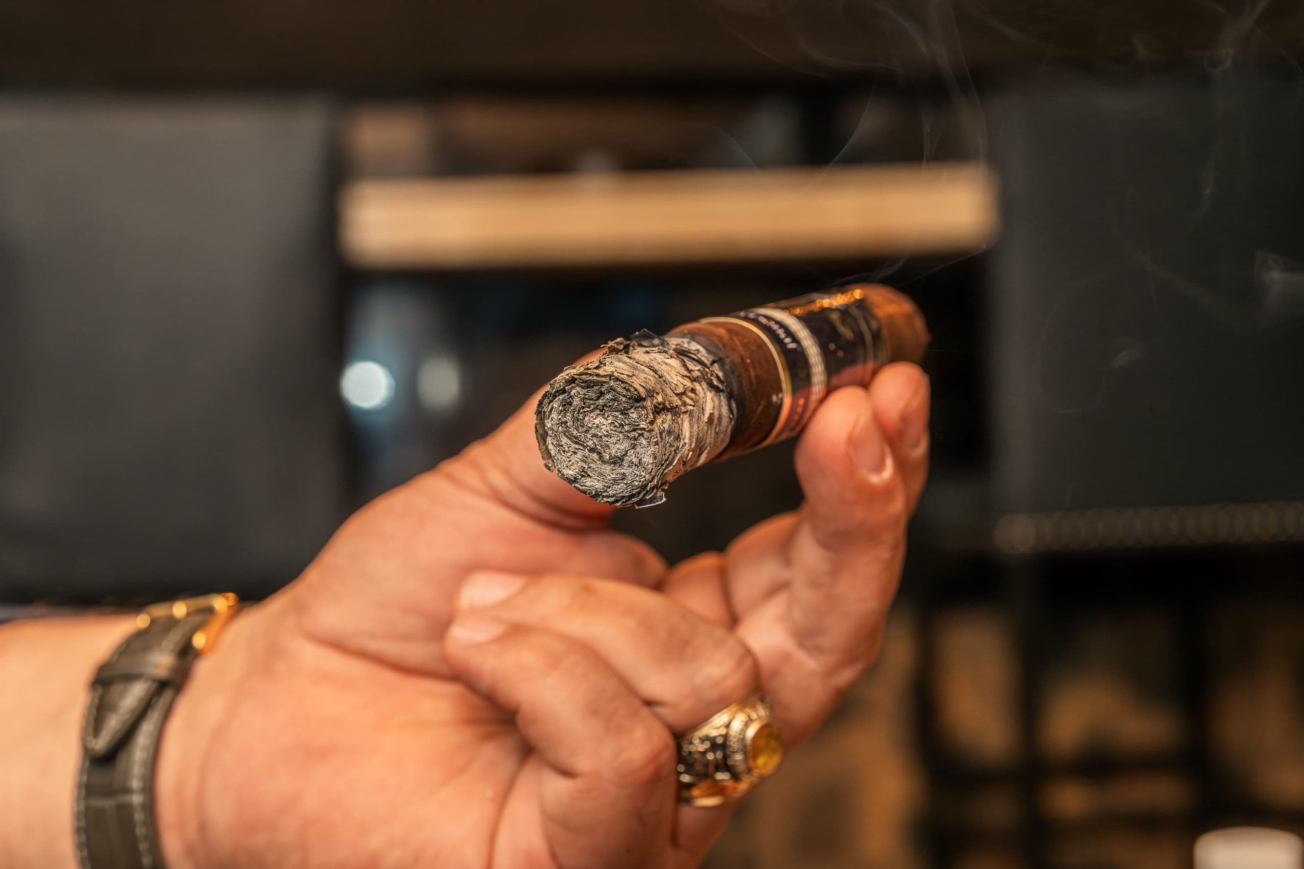 La fortaleza aumenta, los sabores descritos persisten en el paladar, y en cuanto a los aromas, también permanecen debido a sus tabacos de origen. Vemos cómo la combinación del Negro San Andrés y Piloto Mejorado demuestra que, cuanto más avanzas, mejor se pone la fumada. En este caso es un cigarro que, al terminarlo, llama a seguir fumándolo. El Master Sommelier recomienda, luego de elegir el destilado de su preferencia, terminar con una pequeña porción de chocolate orgánico al 70 por ciento.