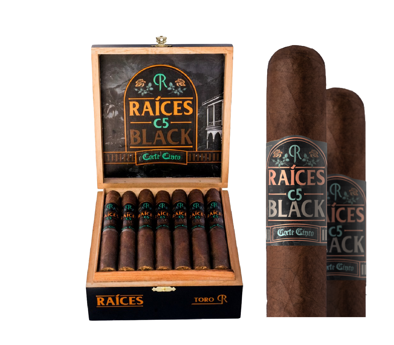Raíces C5 Black toma su nombre e inspiración de “el Corte Cinco”, o la quinta cosecha de la hoja. Esta capa premium es la esencia del C5 Black, dotándolo de una complejidad profunda y un perfil de sabor audaz. Las vitolas disponibles en Alemania serán: