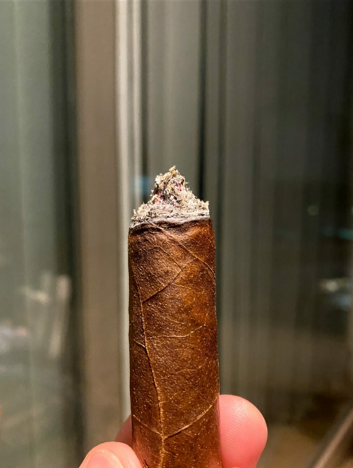 En estos dos últimos tercios se evidencia bastante bien el Perique, pero más por su picor que por su sabor, que es más sutil y requiere de bastante concentración para realmente detectarlo como tal. A pesar de que la presencia del tabaco para pipa se evidencia, el carácter del puro como tal le pasa por encima al Perique y demuestra algo que creo desde hace un tiempo, después de haber probado una considerable cantidad de tabacos (tanto de pipa como puros):