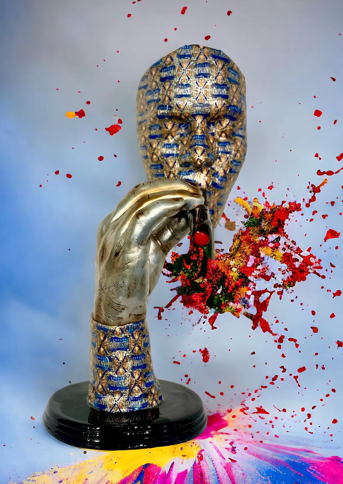 Toma un Cigarro mide aproximadamente 17 pulgadas de altura y 6 pulgadas de circunferencia, en cuya intervención se ocuparon cerca de un centenar de anillas. Como siempre, los patrones precisos de Robert y el uso creativo de los materiales despiertan el interés en obtener alguna de sus piezas.