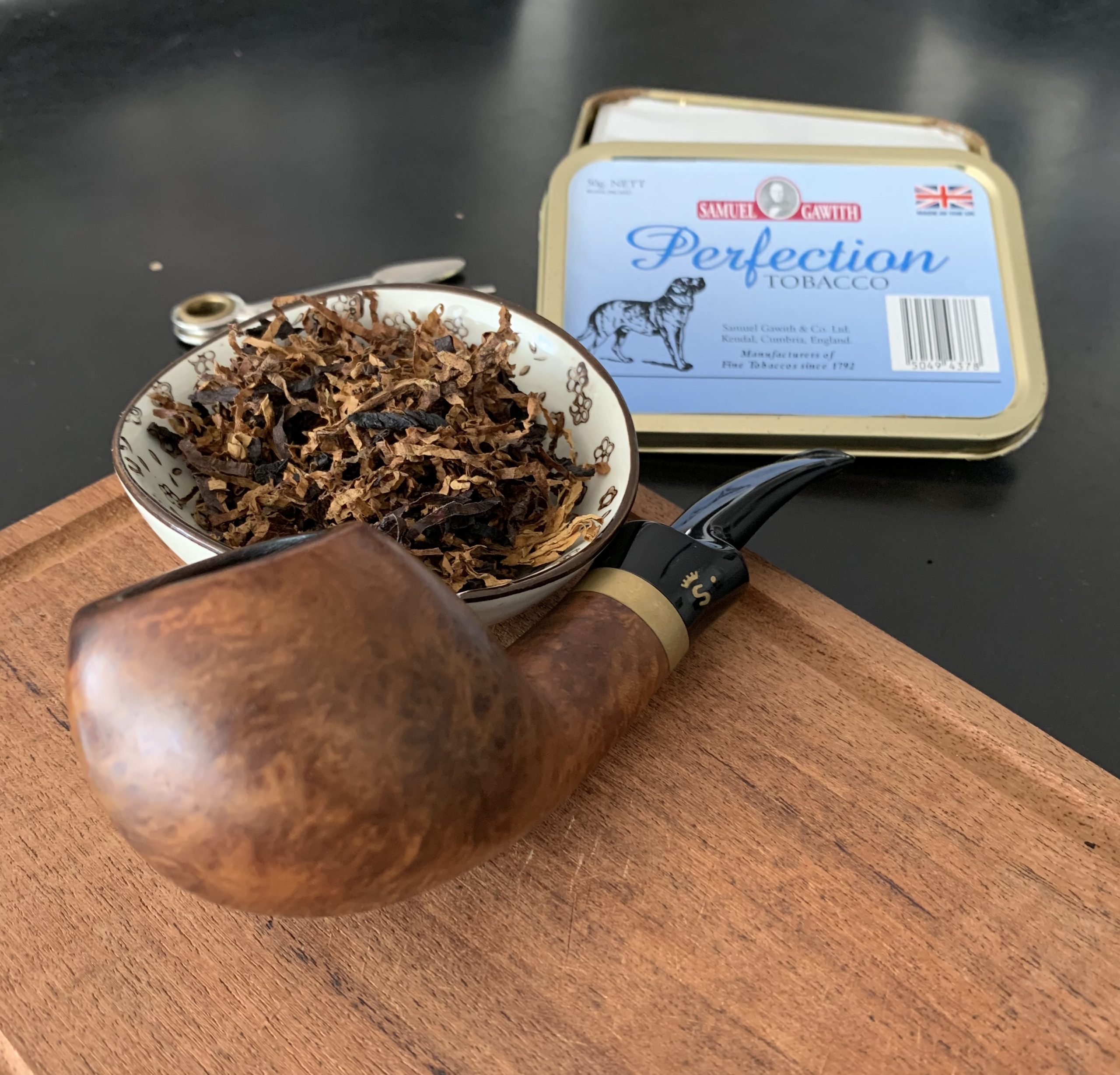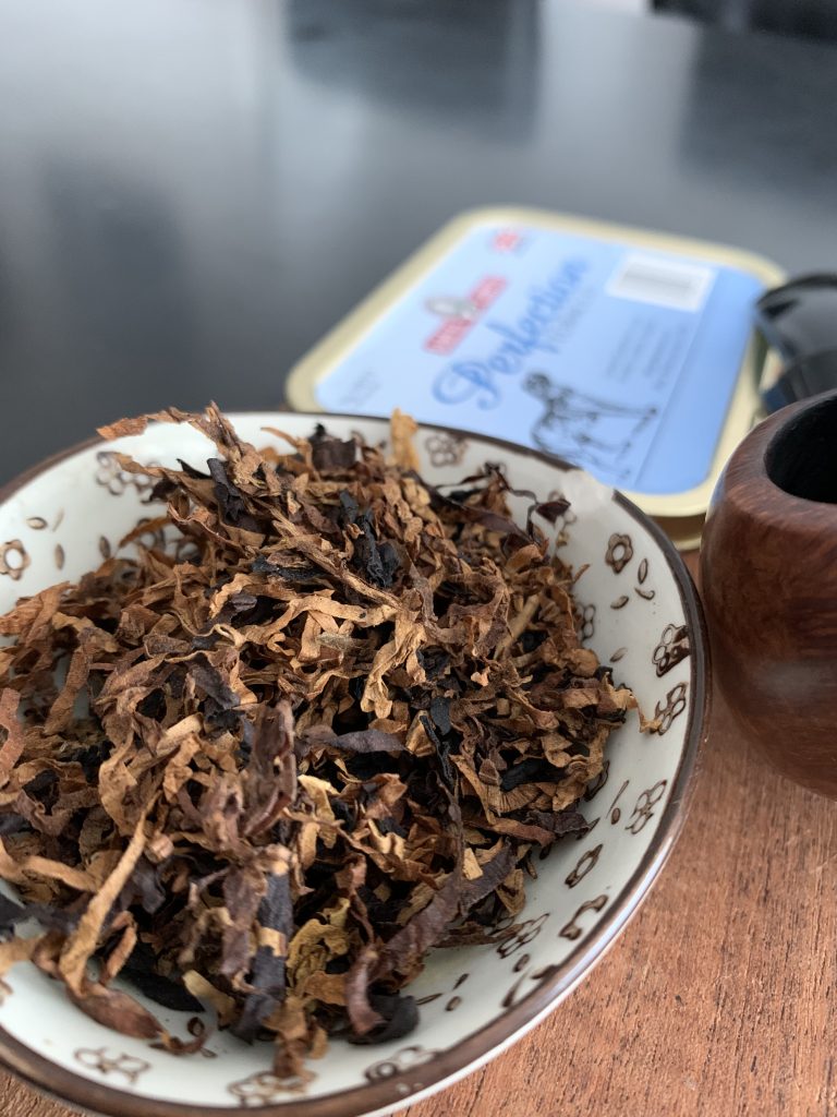 En esta oportunidad el blend en cuestión es Perfection de Samuel Gawith. Cuenta la leyenda que su nombre se debe a que una vez un fumador de pipa le pidió a Gawith que le elaborara una mezcla que pudiera fumar todo el día y todos los días, ya que ninguna, para este hombre, cumplía con esa condición. Cuando finalmente el hombre probó esta mezcla exclamó: ¡Perfection!